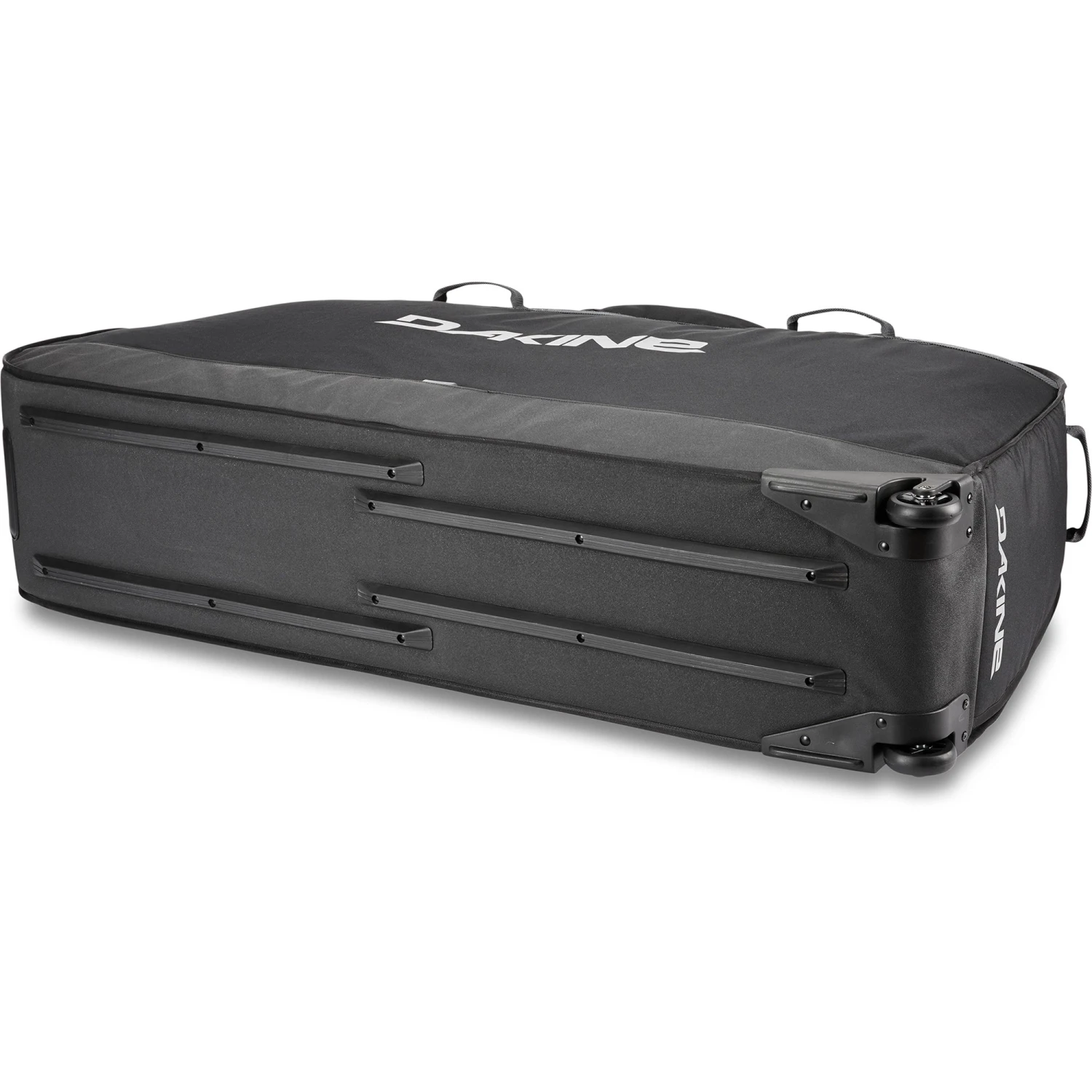 Take the stress out of traveling with your bike. The Dakine Bike Roller Bag is tricked-out to make packing easy and to keep your bike safe during transit. It delivers 360° coverage for mountain, road, downhill and fat bikes. First, the anchoring system and bag frame structure are interconnected to maintain structural integrity and bike safety. Second, bike-specific pads and EVA padding protect critical areas including discs, drivetrain and dropouts. The kit includes wheel and fork bags as well as a roll-up tool bag to keep essential assembly tools and small parts organized. Third, bomber wheels and multiple grab handles makes for smooth transitions, and the bag’s collapsible design lets you roll it up for compact storage.