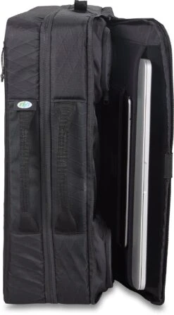 Don’t let the clean look of the Concourse Messenger bag fool you. It’s full of features to meet your mobile workstation needs. The split-level design with a clamshell zipper opens wide to lay flat and lets you hang it from a door for full access. Neoprene sleeves keep tech secure and at the ready, while varied carry options include backpack straps, a shoulder strap and the ability to slide it over the handle of a roller bag for smooth airport transitions.