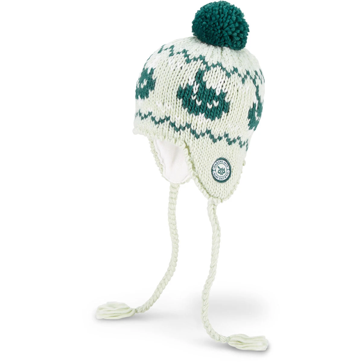 Pull on a little retro hand-knit style. The Hannah beanie has you covered on a cold day with fleece-lined ear-flap flair. The chunky knit design features a traditional pattern and cute critter detail.