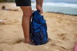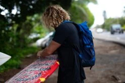 A serious surf backpack for serious surfers and adventurers alike, the 35-liter Mission Surf Roll Top Pack is designed to hold everything you need for multi-session days at your local break and extended travel in search of uncrowded waves. With 35 liters of storage, this pack has ample space for heavier wetsuits, so you won’t shiver through cold-water sessions. The seam-sealed, roll-top opening provides easy access to your gear while also ensuring that contents remain dry in the rain. On the outside, the pack features webbing loops and stretch cording to keep wet gear clinched while drying. A tarp-lined side pocket with a Velcro closure keeps wax and fins secure, and a fleece-lined zippered compartment protects your phone and sunglasses while you’re in the water.