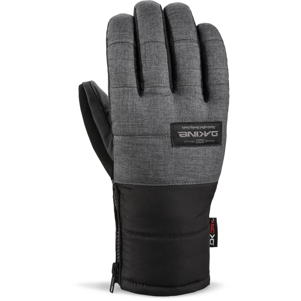 With the Omega Glove, we took a little different approach to the classic ski and snowboard glove. The nylon/poly blended fabric of the water repellent shell is assembled in segments from the cuff through the mid-hand, with a zippered closure on the inside of the wrist. This lets us build in form-fitting design lines for a snug overall fit without constricting movement. The DK Dryâ„¢ waterproof insert and 300g fleece lining make sure your hand stays warm and happy while we’re busy admiring the construction patterns and custom prints.